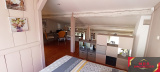 Grande pièce de vie lumineuse ouverte sur la cuisine, équipée d’une cheminée et bénéficiant d’un accès direct à une terrasse extérieure exposée sud-est.